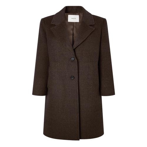 헤지스 여성 캐시미어 블렌디드 테일러드 싱글 체크 롱코트 브라운 (HSCO5D013W2)
