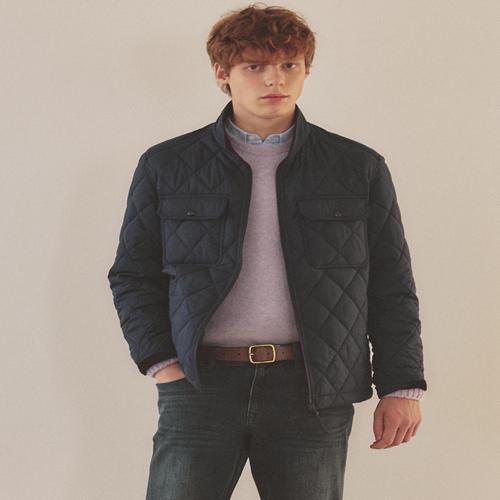 헤지스 남성 [AIR DOWN] 네이비 다이아 퀼팅 구스다운 패딩 점퍼 (HZJU4D362N2)