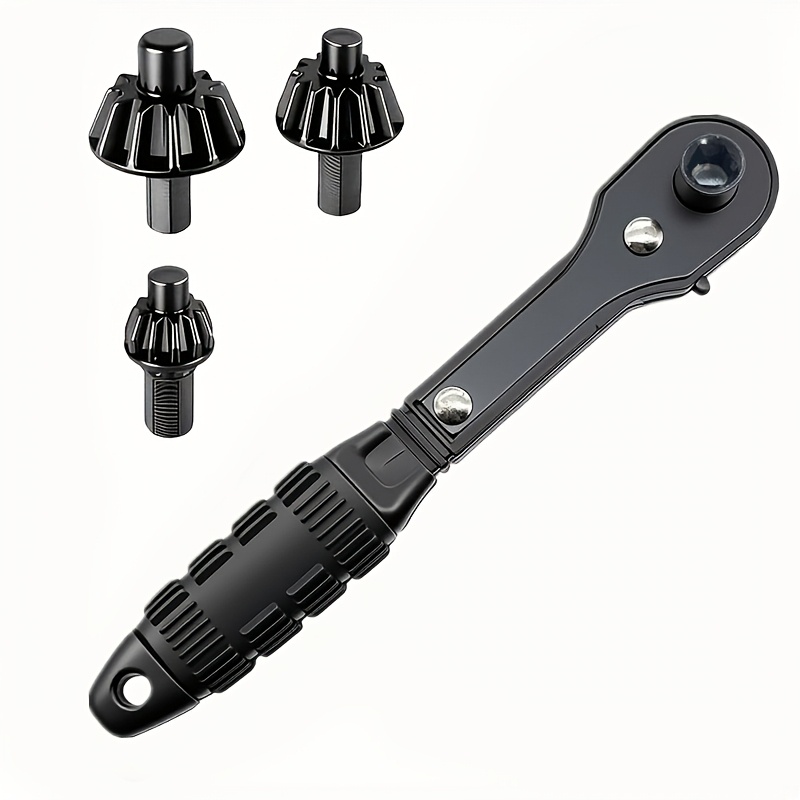 TEMU 4개 세트 헤비듀티 3-in-1 래칫 드릴 척 렌치 세트, 교체 가능한 헤드, 3단 기어 퀵 래칫, 정방향/역방향 회전 및 미끄럼 방지 핸들 - 1/4" 헥스 샹크 비트 호환, DIY 및 전문가용 키트 (드릴 비트 클램프 렌치)
