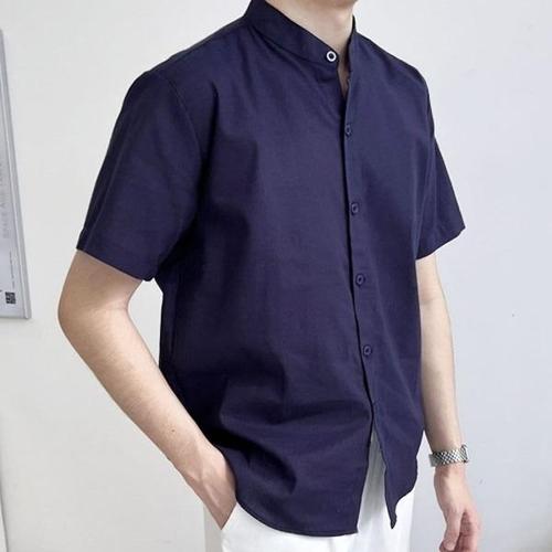 [엄지척]남성 헨리넥 린넨 셔츠 여름 반팔 남방 직장인 출근룩_20484874_667501