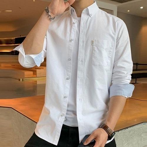 [엄지척]롤업 소매 코튼 남성 셔츠 깔끔 직장인 데이트 코디_20478811_667501