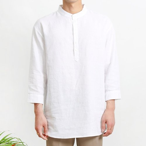 [모로엠] 7부 린넨 혼방 헨리넥 셔츠 DM-SHSH-QTTA1915
