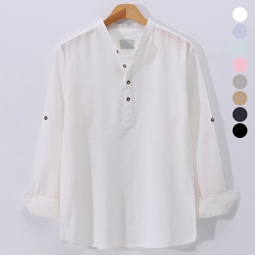 [후앙스] 헨리넥 린넨 차이나 긴팔 롤업 셔츠 SBST6218