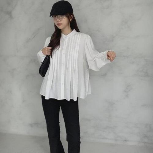 [신상오픈런]여성 기본 색상 핀턱 헨리넥 셔츠