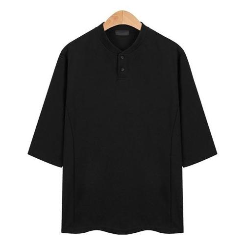 [HY31K86J_56]투버튼 헨리넥 라운드티 티셔츠 7부