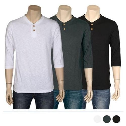 [엄지척]남성 헨리넥 투버튼 라운드 7부티셔츠 3컬러_CMT013_20430138_667501