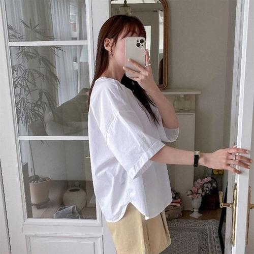 [다잇템][다잇템] 여자 봄여름 카라없는 헨리넥 칠부 라운드 박시핏 블라우스_16269184_588872