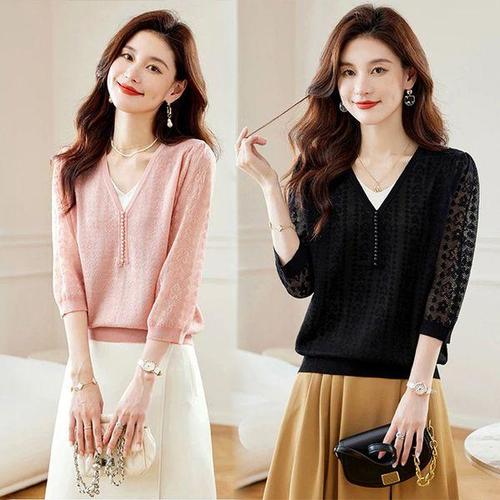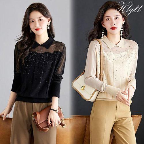 [헬리꽁땡](55~88)2종세트 크로쉐레이스니트풀오버 쉬폰블라우스 가을롱셔츠 자수셔츠 가을블라우스 40대..