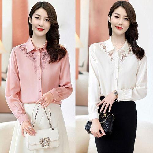 [헬리꽁땡](55~88)2종세트 세미롤업롱셔츠 레이스블라우스 쉬폰블라우스 가을롱셔츠 자수셔츠 가을블라우..
