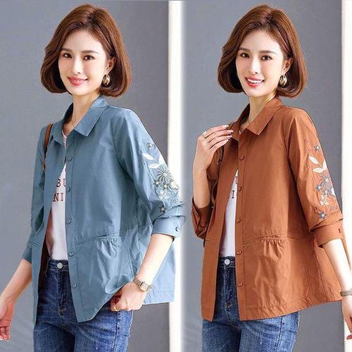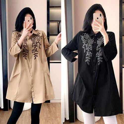 [헬리꽁땡](55~88)자수카라 포플린 셔츠재킷 쉬폰블라우스 가을롱셔츠 자수셔츠 가을블라우스 40대 50대 ..
