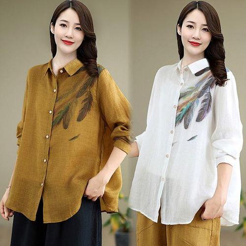 [헬리꽁땡](55~88)3종세트 여성 봄 여름 플라워나염셔츠 린넨셔츠 오버핏 냉감블라우스 아사면