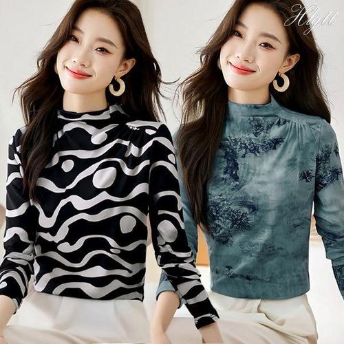 [헬리꽁땡](55~88)2종세트 반목셔링 안감블라우스 겨울블라우스 여성겨울니트티 여성롱셔츠