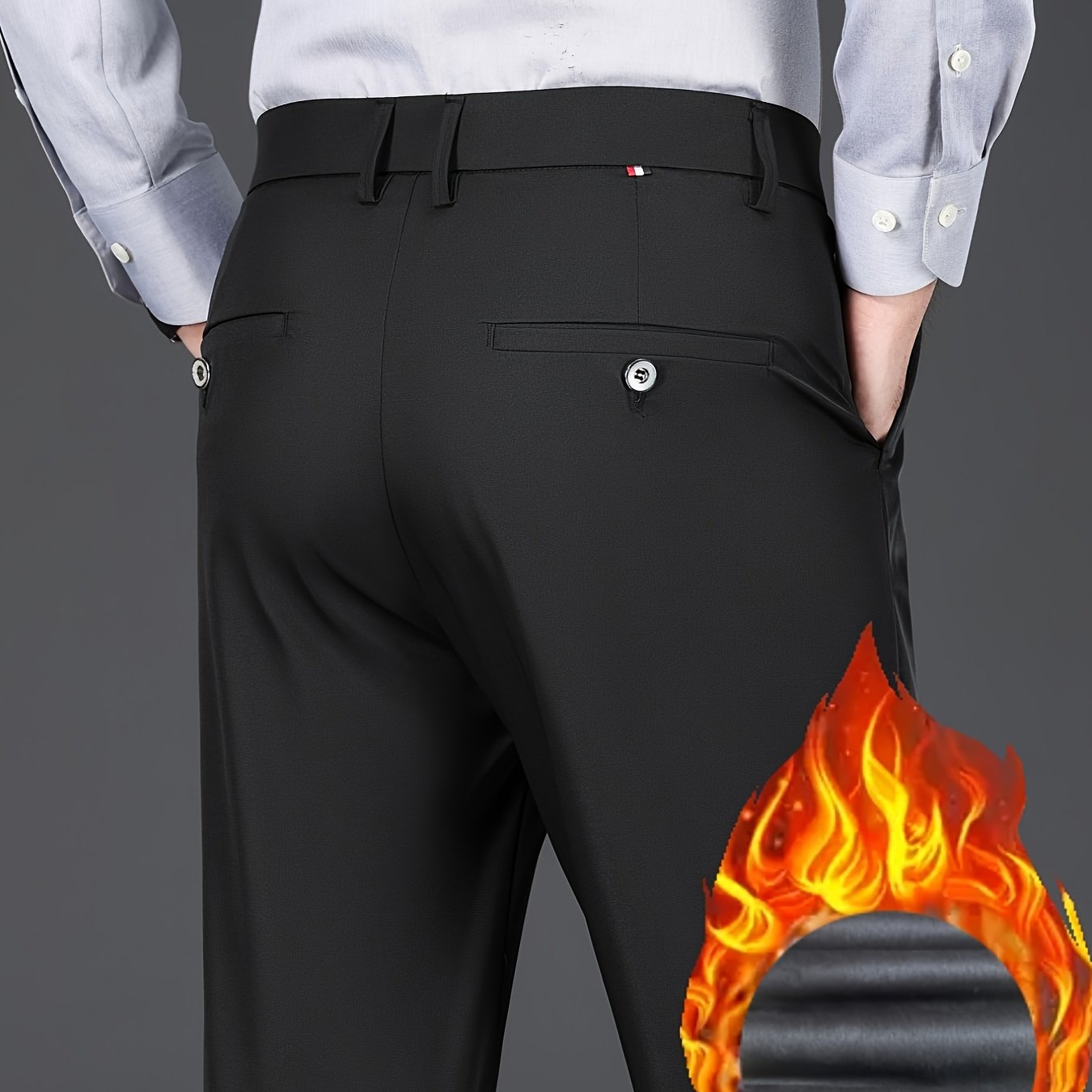 TEMU 남성용 겨울 따뜻한 두꺼운 비즈니스 캐주얼 바지 - 슬림핏 레그 버튼 클로저, 오피스 및 아웃도어 착용을 위한 미드라이즈 디자인, 단색, 지퍼 플라이, 추운 날씨에 적합한 사무실 착용 바지 | 슬림핏 바지 | 내구성 있는 원단 바지, 남성용 겨울 슈트 바지, 남성용 외출 바지, 우아한 남성용 바지