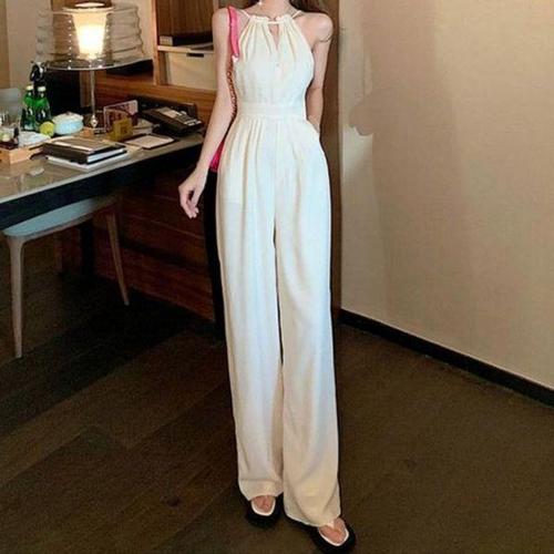 여자 솔리드 컬러 멜빵 여름 멜빵 프릴 + 넓은 다리 바지 2 조각 드레스 세트 흰색 귀여운 우아한 아기 옷