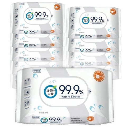 깨끗한나라 99.9손소독 티슈 휴대용 10매 10팩