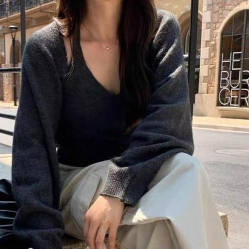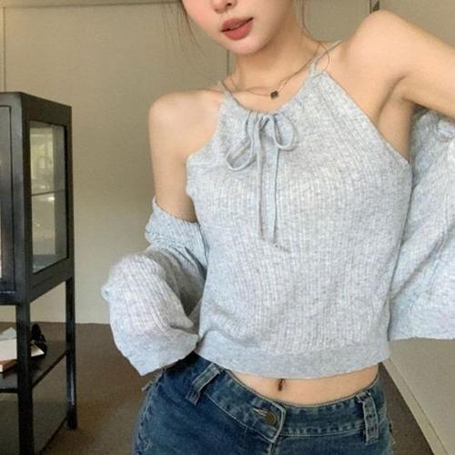 [다잇템][다잇템] 여성 홀터 키치 스웨터 무드 나시와 카디건 세트_23284534_588872