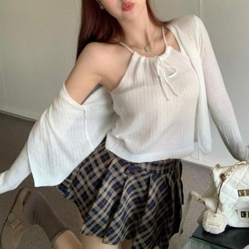 [엄지척]데일리 여성 여름 편한 홀터 나시 가디건 니트 세트_19801819_667501