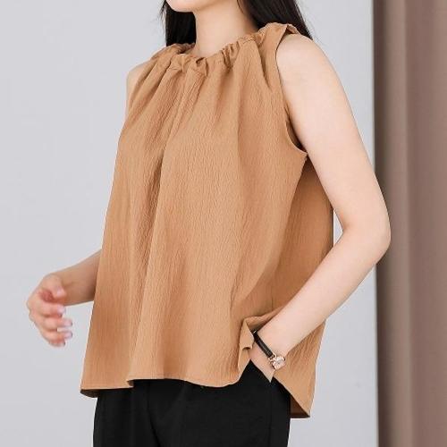 쉬폰 셔링 민소매 블라우스
