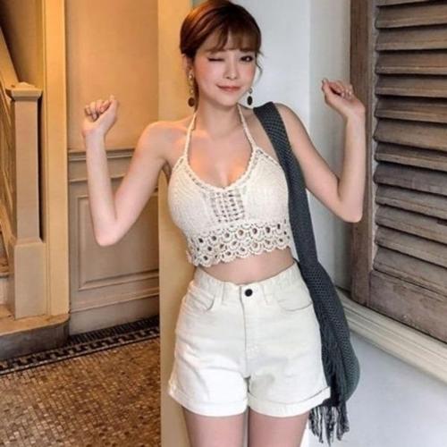[엄지척]니트 크롭티 브라탑 홀터넥 끈나시 여행 나시크롭탑_19600064_667501