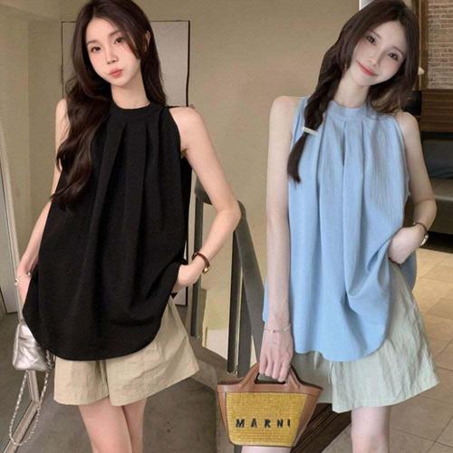 [셀럽하우스]블라우스 VECZ0508 여름 나시티 민소매 홀터넥 슬리브리스