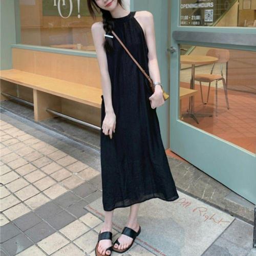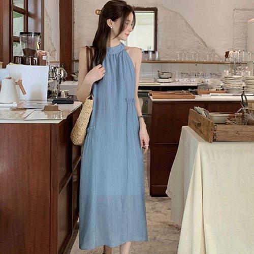 여성 여름 홀터넥 시원한 민소매 꾸안꾸 롱 원피스
