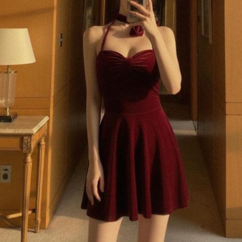 [오너클랜]인기상품 슬림핏 홀터넥 미니 드레스 클럽용 끈 원피스 [WFLL8CO_260304]
