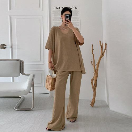 [유야]여성 브이넥 반팔 롱티셔츠 부츠컷 바지 세트 -FPST0062- 봄 여름