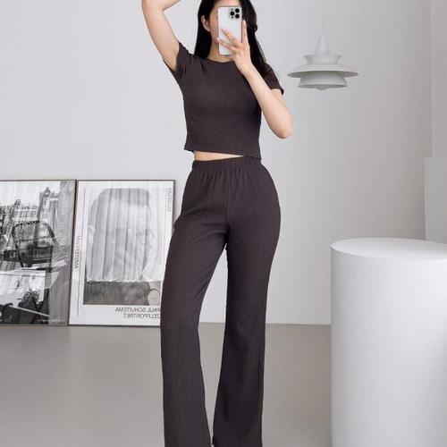 [다잇템]여자 슬림 크롭티 부츠컷 롱팬츠 여름 세트