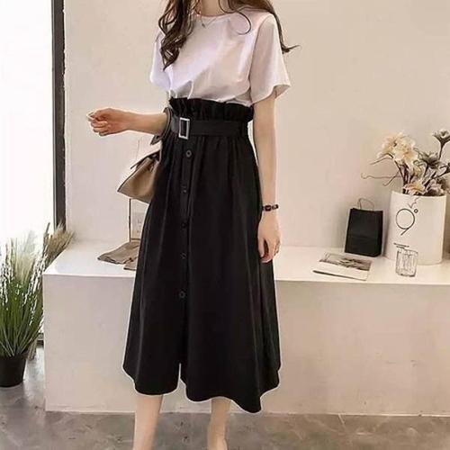 [유야]여성 무지 레이어드 반팔 티셔츠 롱스커트 세트 -FSST0021- 여름