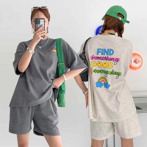 [유야]여성 면 반팔 롱 티셔츠 밴딩 반바지 세트 -FPST0078- 봄 여름