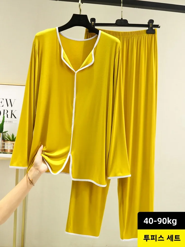 얇은 모달 긴팔 긴바지 홈웨어 세트 여성용 브이넥 풀오버 레이지 스타일 잠옷 투피스 세트 가을 겨울