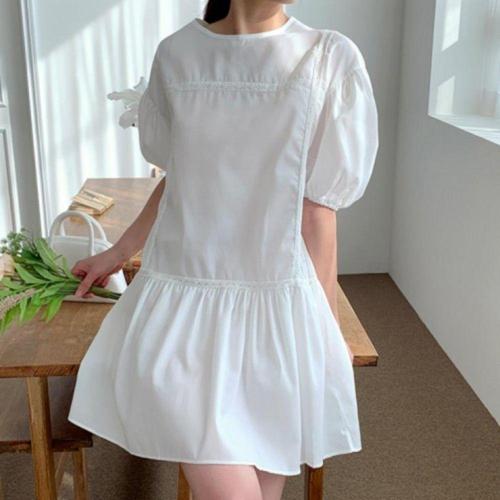 [샵앤]여성 스퀘어넥 퍼프 스모크셔링 면 미니원피스 MCR-WDR-4679-화이트