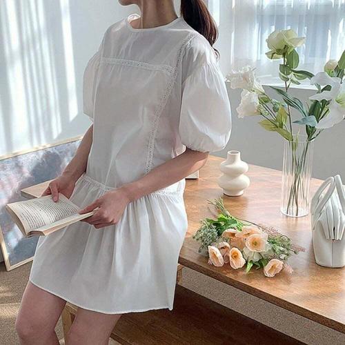 [오너클랜]인기상품 여성 로맨틱 데이트룩 화이트 퍼프 볼륨 미니원피스 [WFLJ94I_260301]