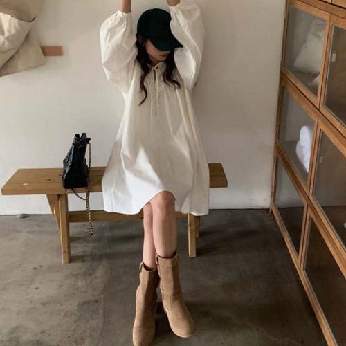 [브이와이][VY] 여자 흰색 미니멀리즘 잔주름 벌룬 SS 셔츠스타일 원피스_16257524_588847