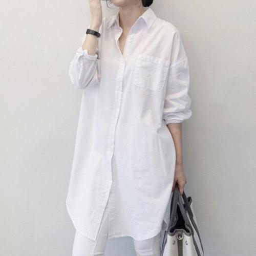 [엄지척]루즈핏셔츠 여성 와이셔츠 무지 화이트 롱셔츠_19652373_667501