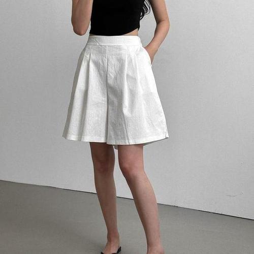 [옷자락]여자 화이트 3부 투핀턱 여름코튼팬츠 와이드핏 반바지