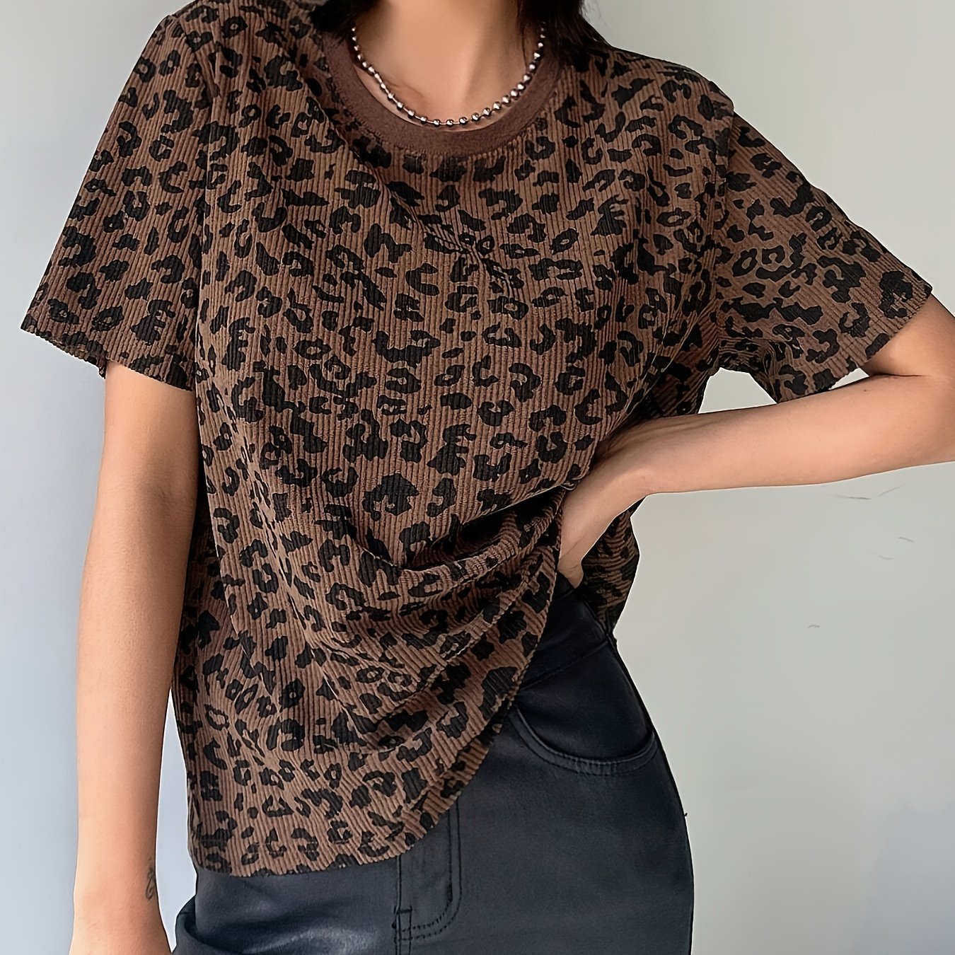 TEMU 여성용 우아한 심플 라운드넥 프린트 반팔 티셔츠