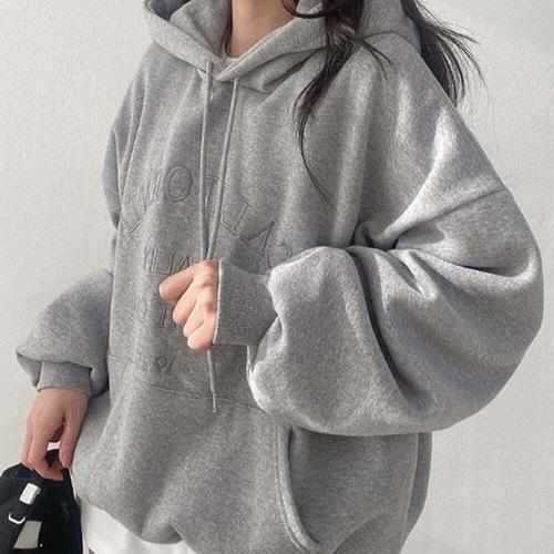 [셀럽하우스]레터링 UESD2134 디자인 오버핏 여성 후드티 일상 패션 회색 티