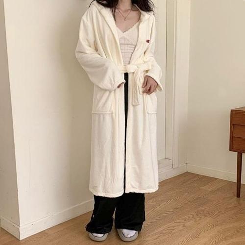 두툼하고 포근한 겨울 극세사 후드 샤워 가운 목욕 여성 여자 로브 가운
