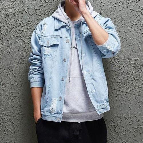 [에이치플러스몰]남성 가을 청자켓 데미지 디테일 데님아우터 INSUM41 패션 후드 데님자켓 가을아우터 남..