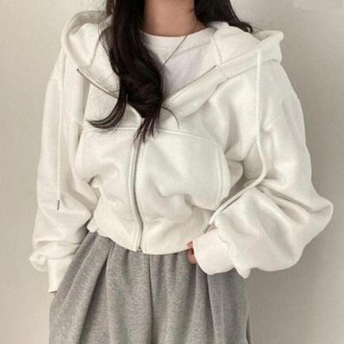 [셀러허브_여성트랜드패션]실루엣 오버핏 트렌디한 후드집업 데일리룩 크롭 여성용 세미