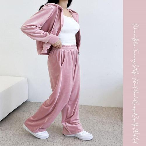 [오너클랜]인기상품 여자 4컬러 벨로아 크롭 후드집업 팬츠 트레이닝 셋업 [WFGNKJ4_260227]