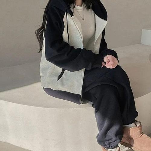 여성 플리스 후드집업 세트_J44TR251