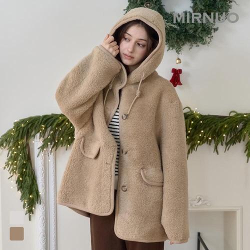 미르누아 럽미 무스탕 퍼 코트 후드 하프코트 아우터