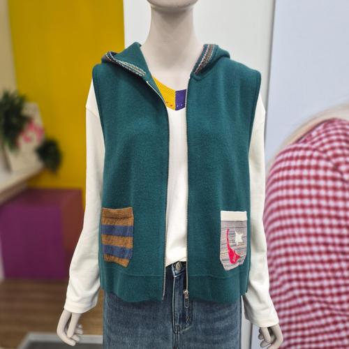 [베네통]베네통 컬러 블럭 후드집업 니트베스트 BAKVA1511 GN