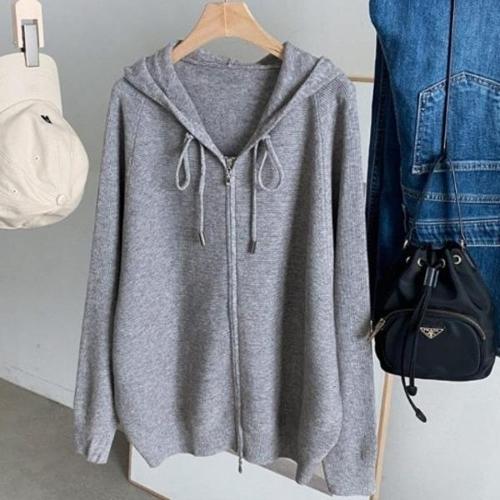 [옷자락] 여자 루즈핏 후드가디건 브이넥 등원룩 니트 롱가디건