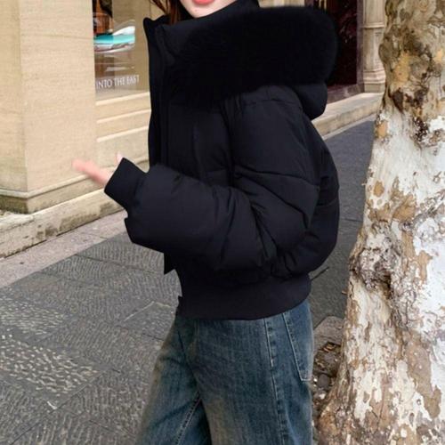 |CHJ6BBA|여성용 겨울 숏패딩 퍼 후드 루즈핏 일상 점퍼