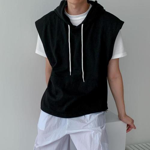 [다잇템]남자 후디 드로우코드 빅사이즈 캐쥬얼 조끼 (10499754A)