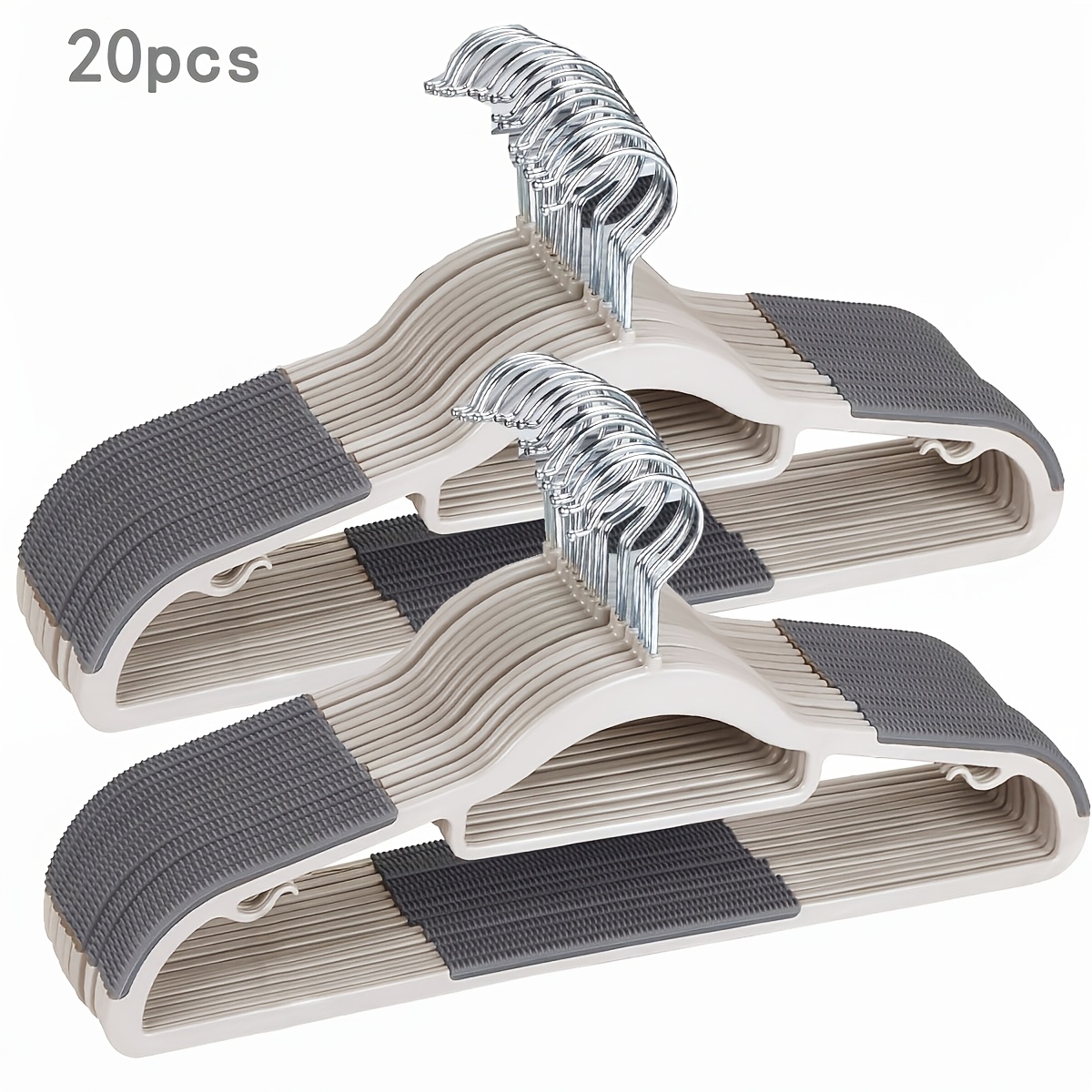 TEMU 10개/20개 내구성 강한 미끄럼 방지 플라스틱 옷걸이 - 미끄럼 방지 패드 포함, 공간 절약형 디자인, 튼튼하고 오래가는 스위블 훅 옷걸이, 봄/여름 가정 의류 보관 및 정리용, 젖은 옷과 마른 옷 겸용, 학생 기숙사 및 발코니용 넓은 어깨끈 옷걸이, 젖은/마른 옷, 욕실, 기숙사 정리에 적합 - 내마모성 매트 마감