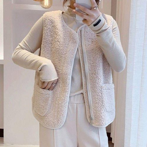 여자 양털 조끼 겨울 뽀글이 숏 베스트 집업 후리스 실내 플리스